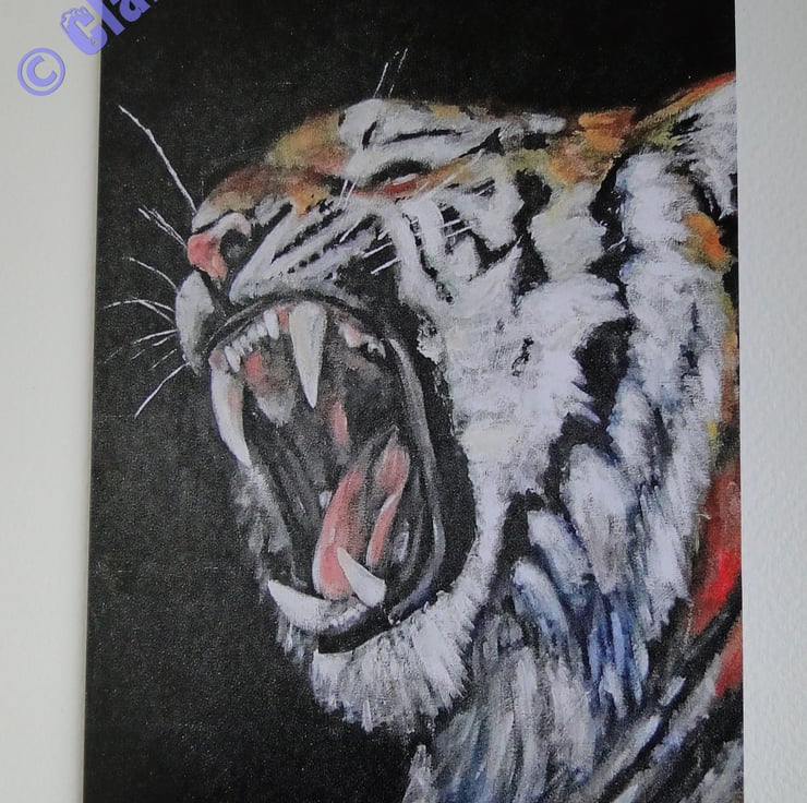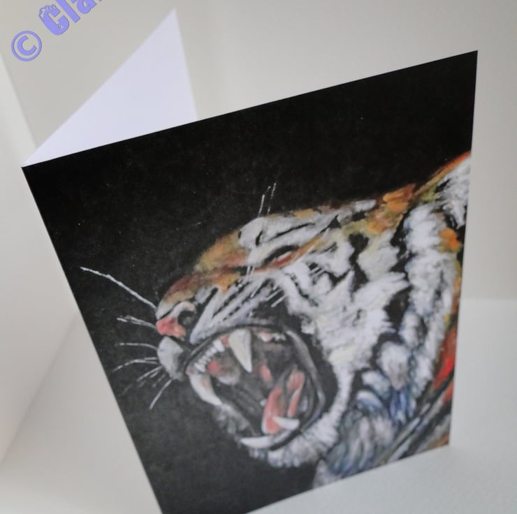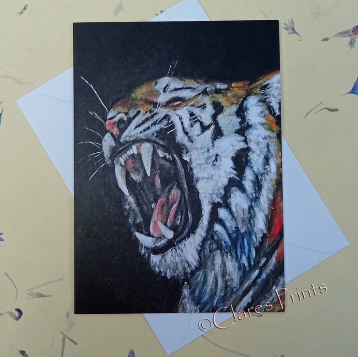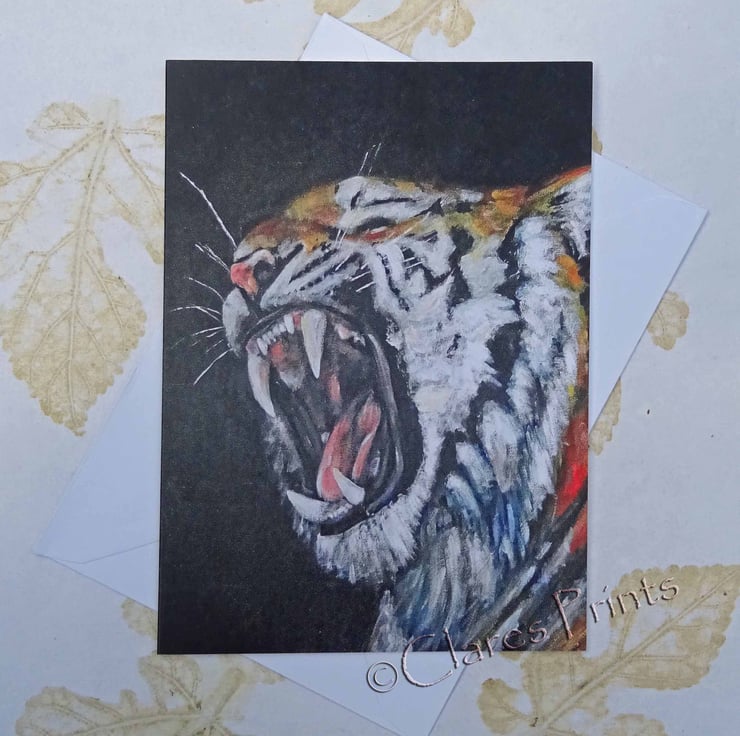 Blank greeting card from my original acrylic painting Tiger Roar.
