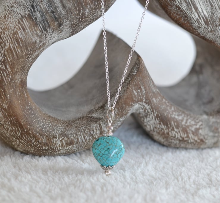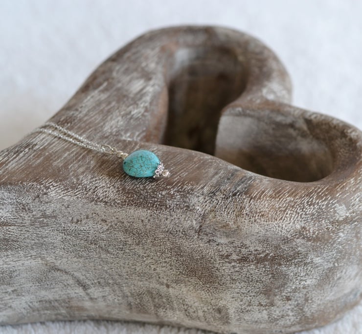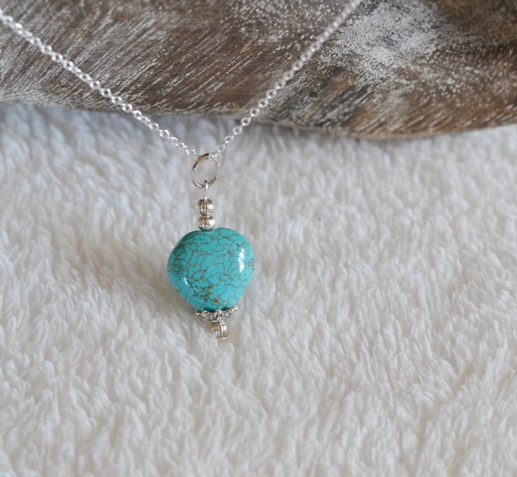 I love this one so much that I have made another one just for myself. The heart measures just under 2cm in length and width. I added a silver melon coloured bead at the bottom of the heart with a silver coloured Tibetan flower cap bead. It has another 2 silver melon beads on top of the heart. It is on a silver plated chain with lobster clasp fastening . The necklace drop measures approx. 10.5" in length.