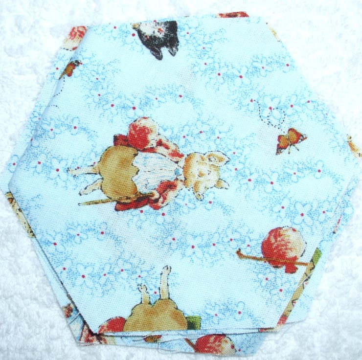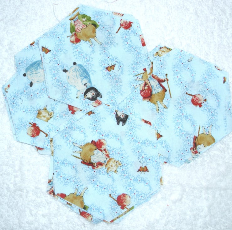 28 fabric hexagons of Pigling Bland for use in patchwork or quilting, new and unused