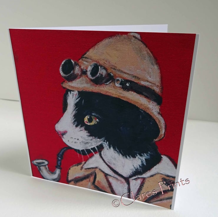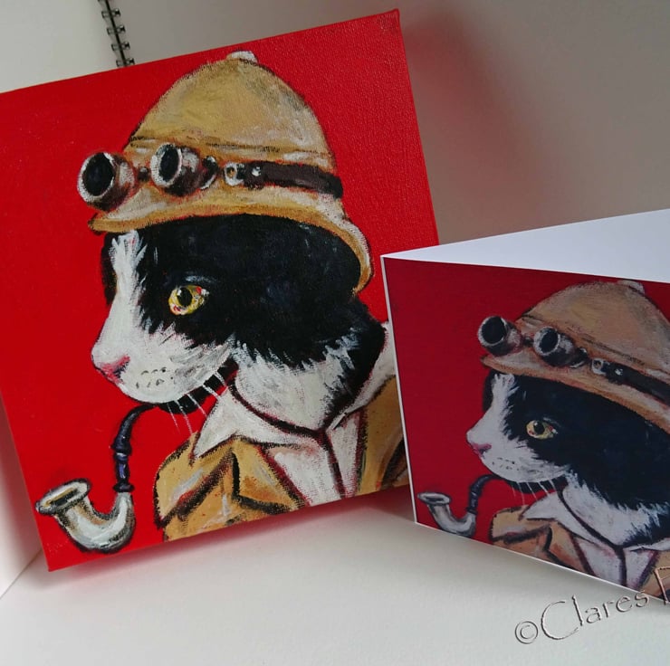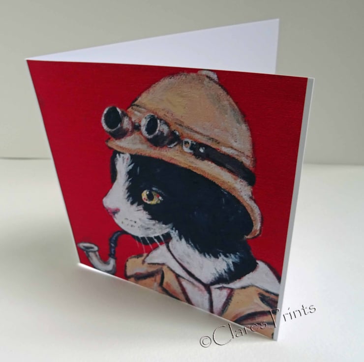 Blank greeting card from my original Acrylic painting Professor Kitty.
