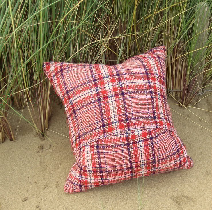 There is a deep envelope opening on the back of the cushion, which is made from the same tartan wool as the front.