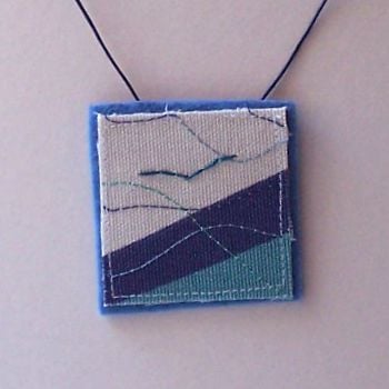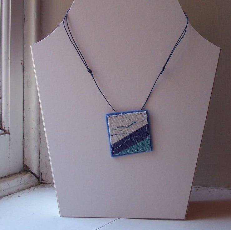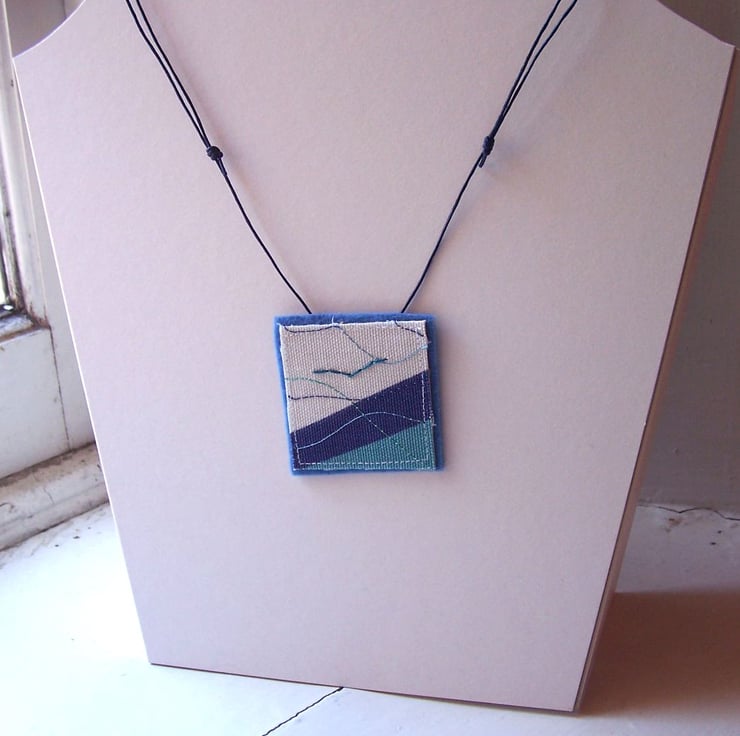 Textile pendant with machine and hand embroidery. One of a kind item.