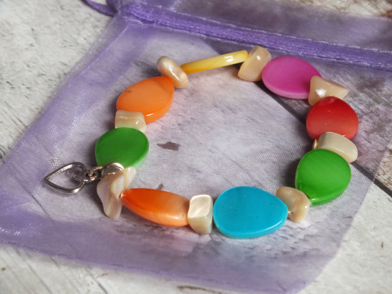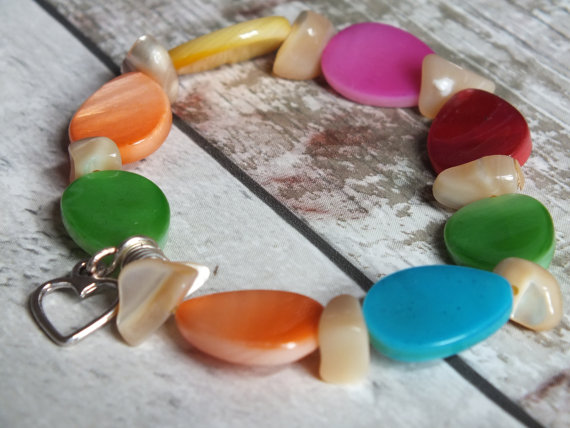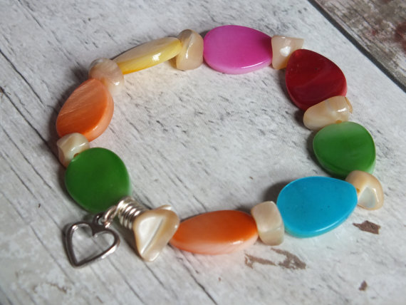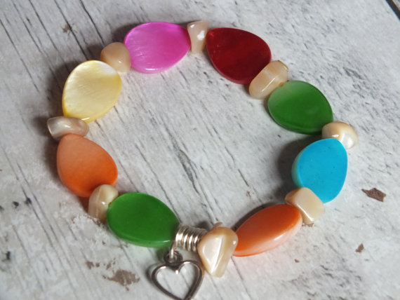 This is such a fun Bracelet with multi colour Shell beads and one heart charm