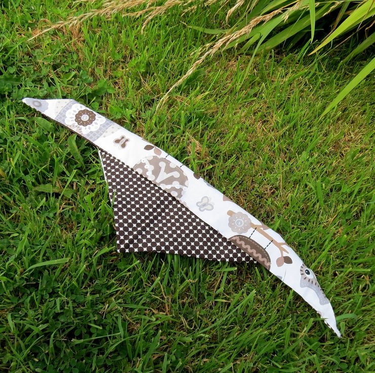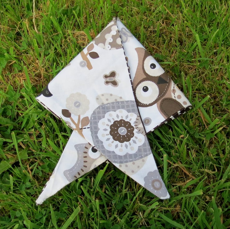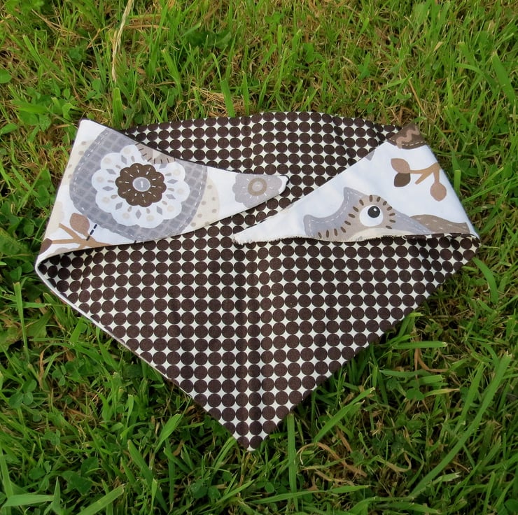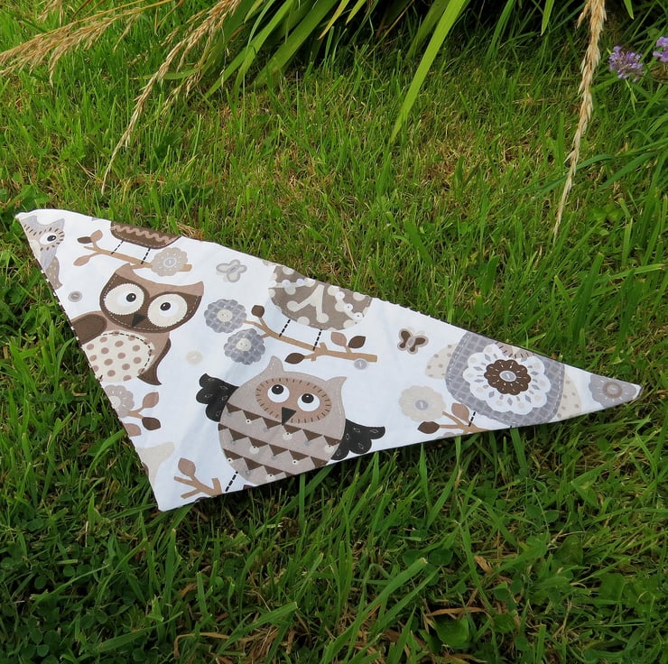 This doggy bandana is made from a soft cotton fabric, with a whimsical owls design.