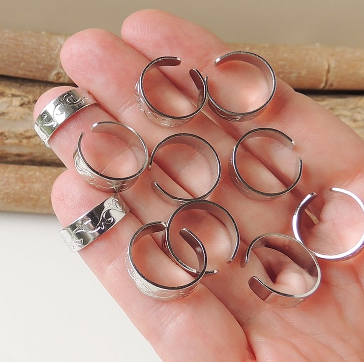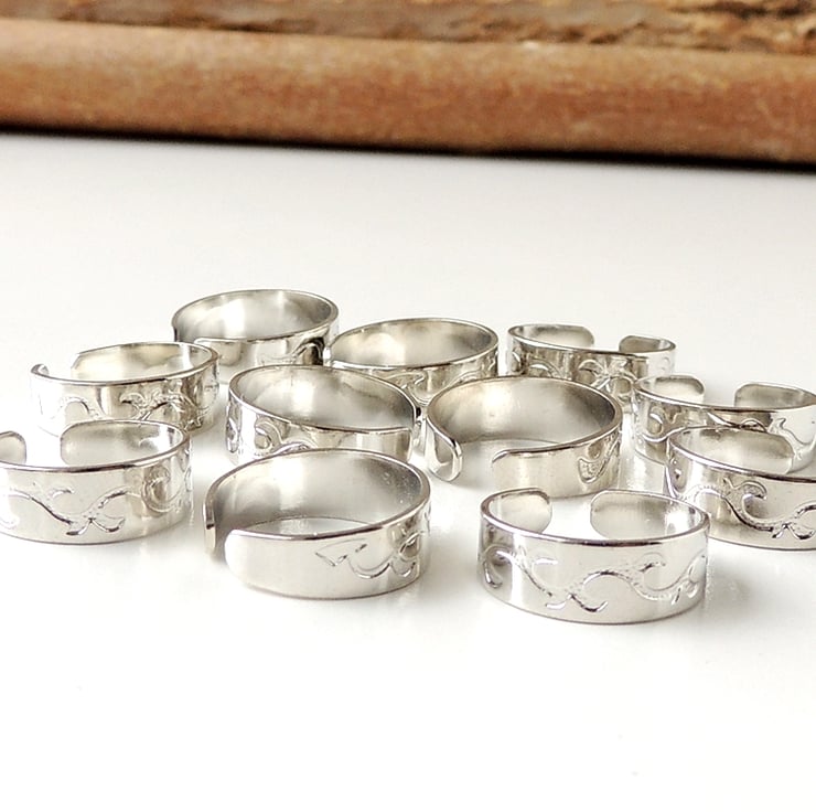 10 x Small Silver Plated Adjustable Ring Shanks (132)