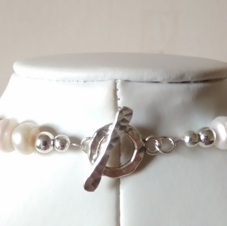 CLASP IS A HAMMERED STERLING SILVER TOGGLE.