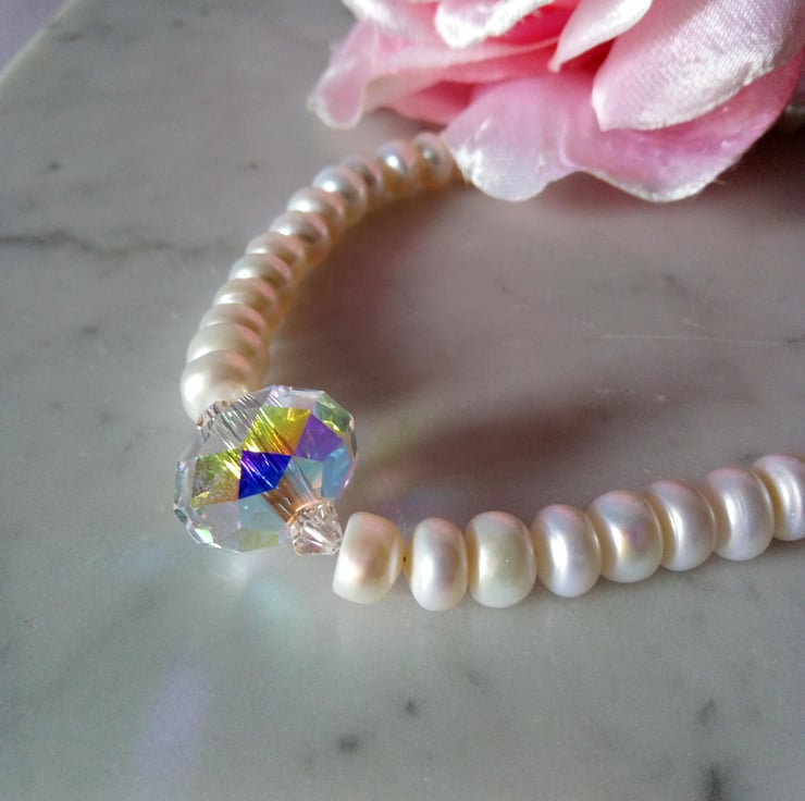 PEARL  AND  SWAROVSKI  NECKLACE - BRIDE - WEDDING - FREE UK SHIPPING