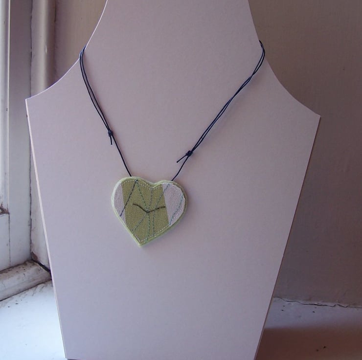 Fulmar textile pendant with machine and hand embroidery. One of a kind item.