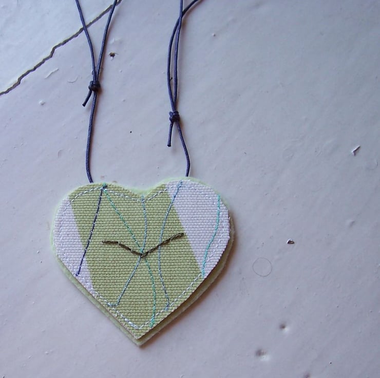 Wool felt backing, stitched onto deepest blue waxed cotton cord with a slip knot fastening - this simply slips over the head and you then shorten it to your preferred length.