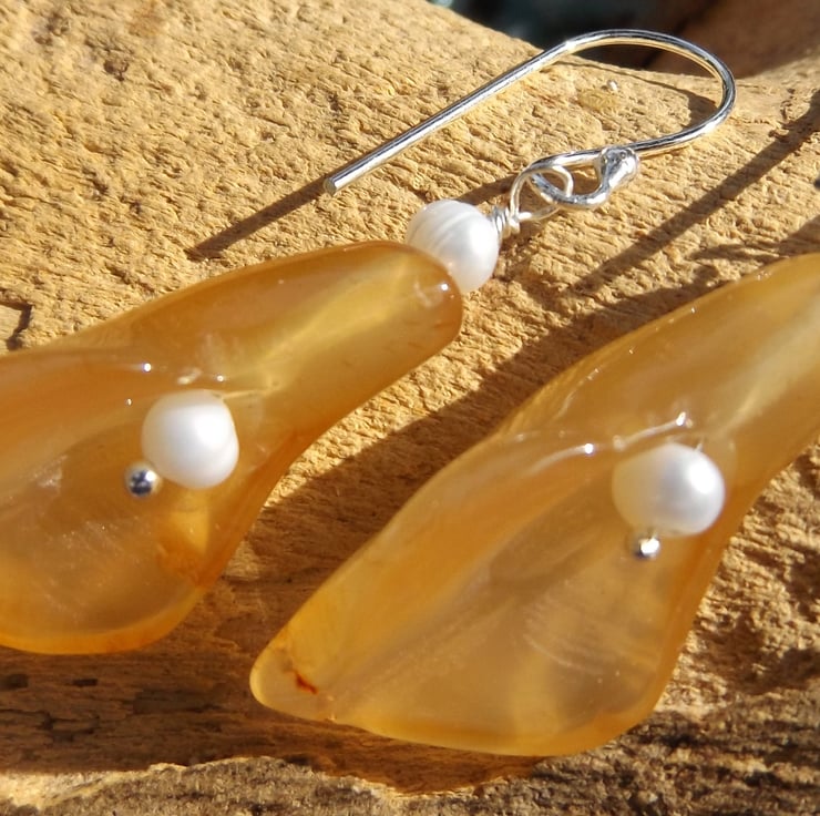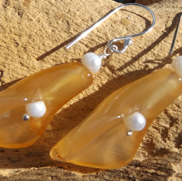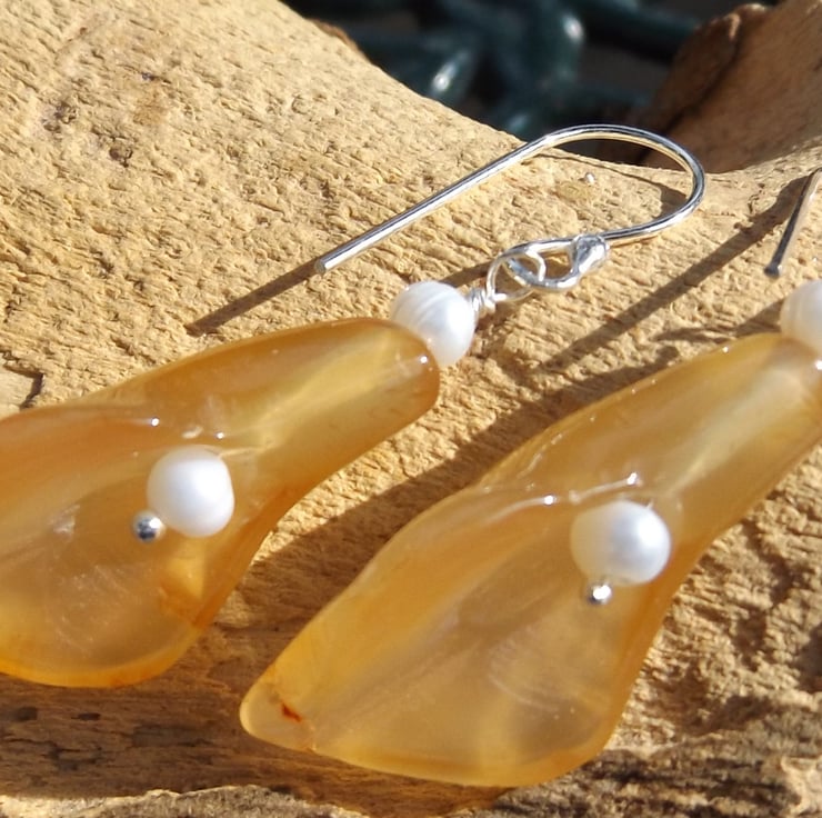 Carnelian and white freshwater cultured pearl earrings with silver plated shepherd hooks drop of 3.5cm will come and gift packaged INCLUDES FREE POSTAGE
