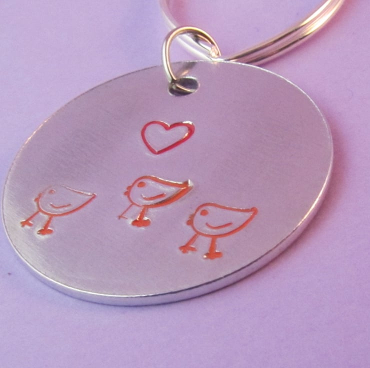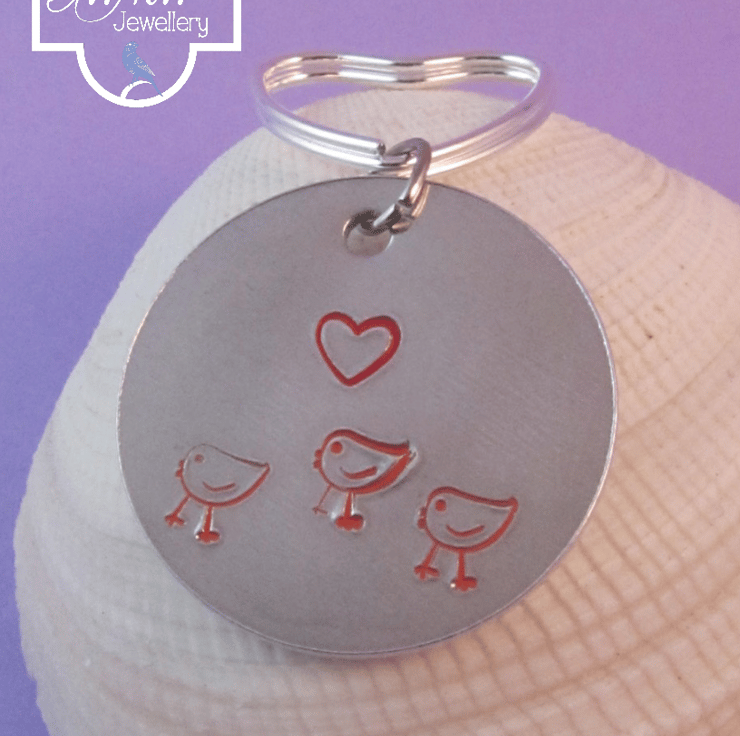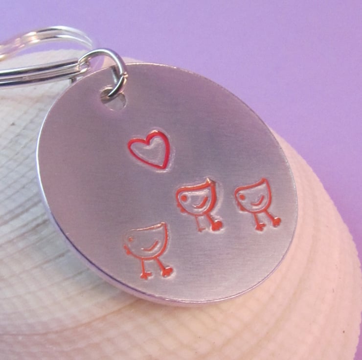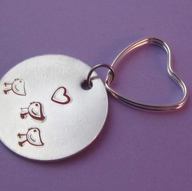 This is a cute 'love chickens' keyring. It is created by hand stamping onto aluminium. It is the perfect gift for those who just adore chickens.