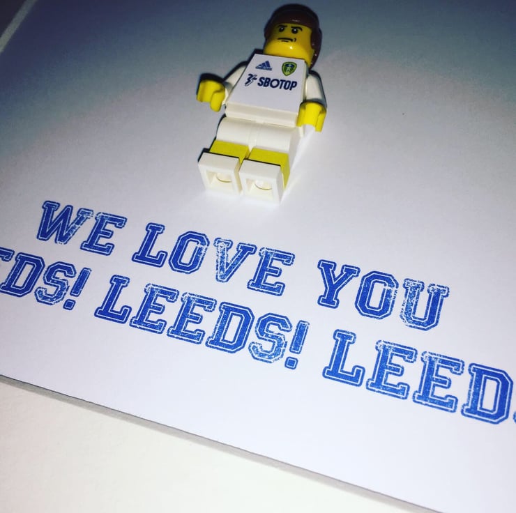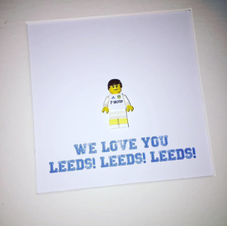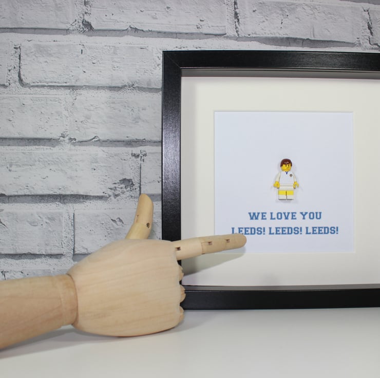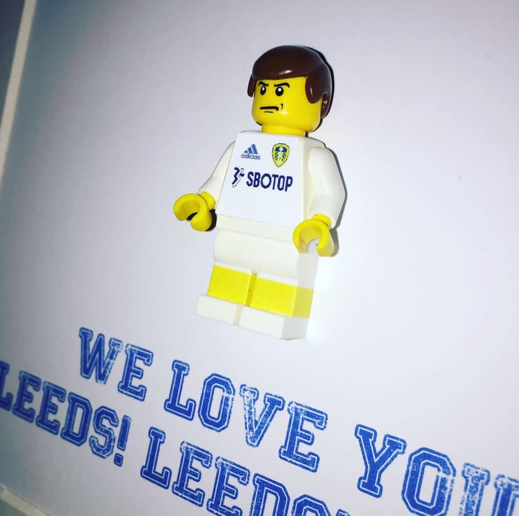 As the football season is about to begin we just had to make sure that the supporters of Leeds United are able to show their passion for their team in a whole new way! Using original Lego parts, we have designed the figure in a replica strip - white socks, white shorts and the latest football shirt. The torso features a stickered front with the team badge. Underneath we have printed the legendary "We love you Leeds! Leeds! Leeds!" to finish off a truly memorable piece.