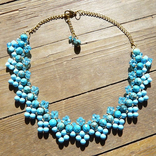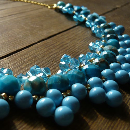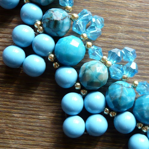 This necklace is made of Swarovski crystals, glass beads and seed beads.