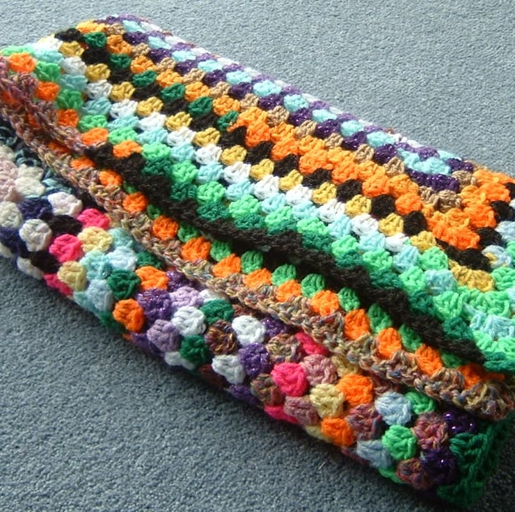 This particular BARGAIN Blanket measure approximately 32" x 32" and would make a lovely gift for all ages. Full of lovely colours too.