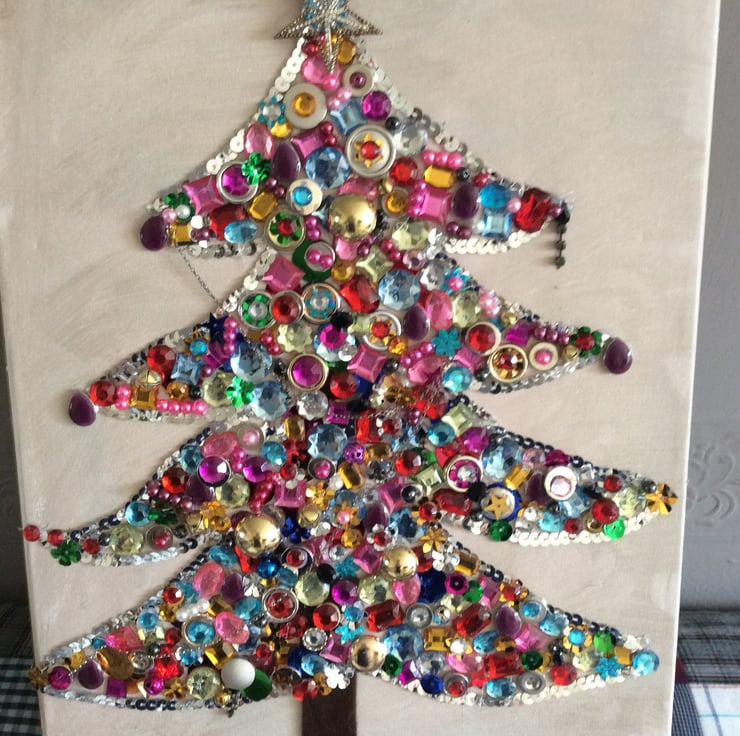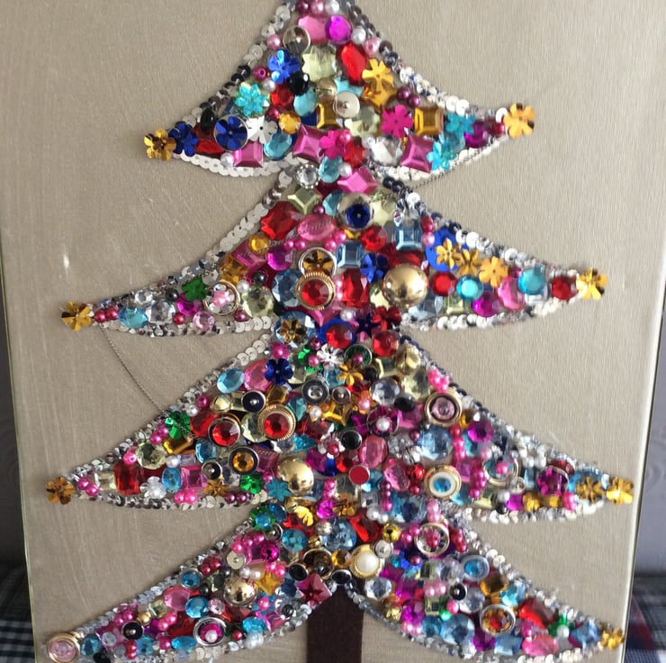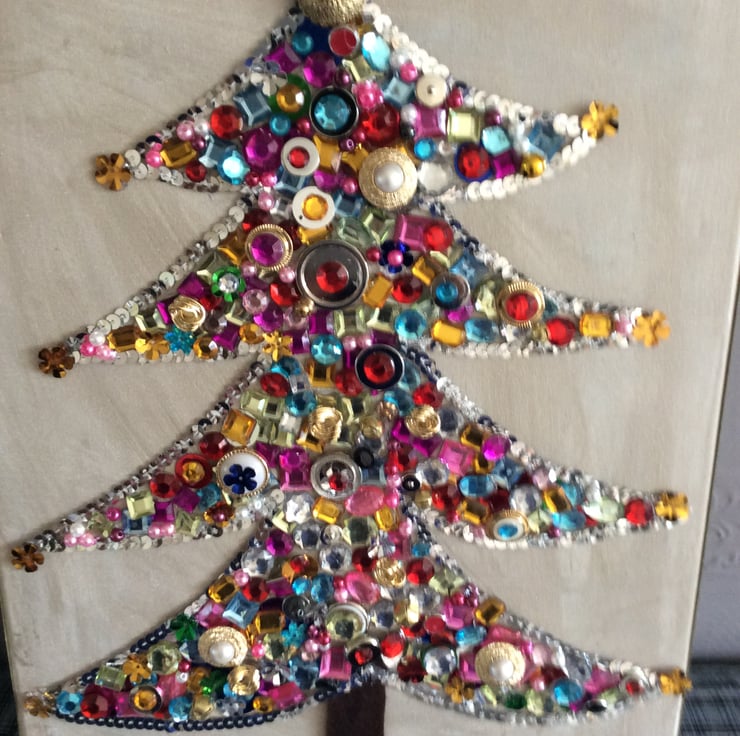 Gorgeous, beautiful, decadent and totally unique. These sparkly Christmas Trees will add a splash of colour to any wall, alcove or shelf. 40cm x 30cm.