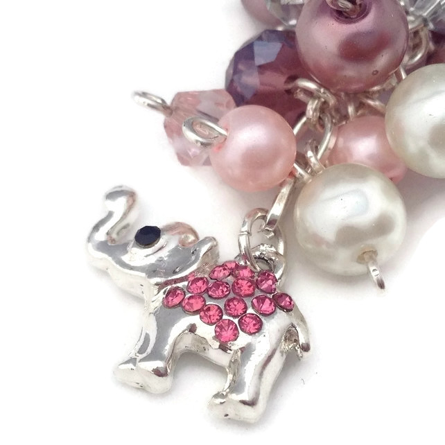 A pretty bag charm that is perfect for anyone who likes elephants or the colour pink.