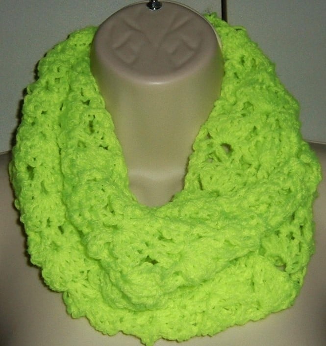 this bright green/yellow infinity scarf has been designed especially for children to wear on dark winter evenings. Any child would love this scarf and it is bright enough for adults to see them.
