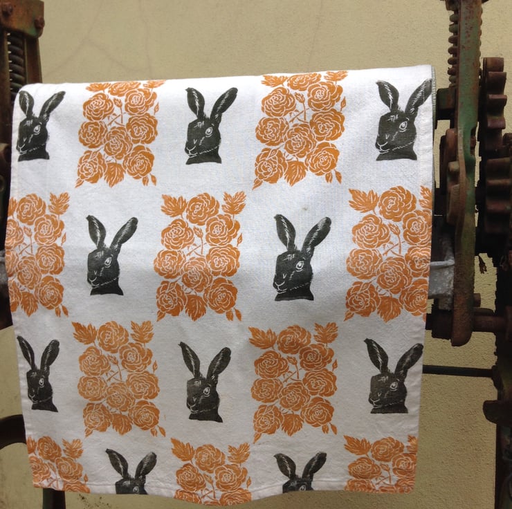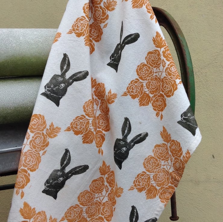 Brighten up your kitchen with this gorgeous hand printed tea towel.
