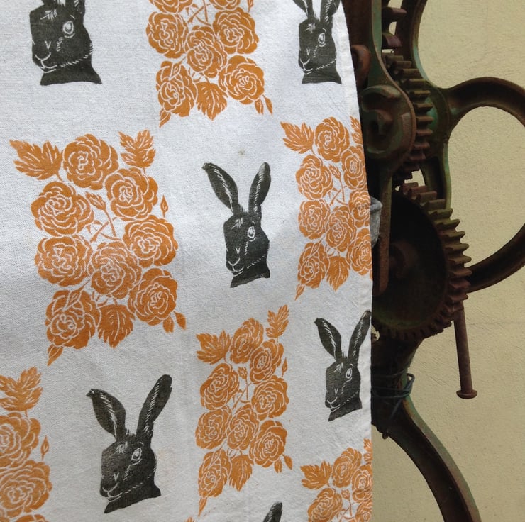 Printed using a Lino block printing method, using linseed oil based ink on a lovely cream 100% cotton.