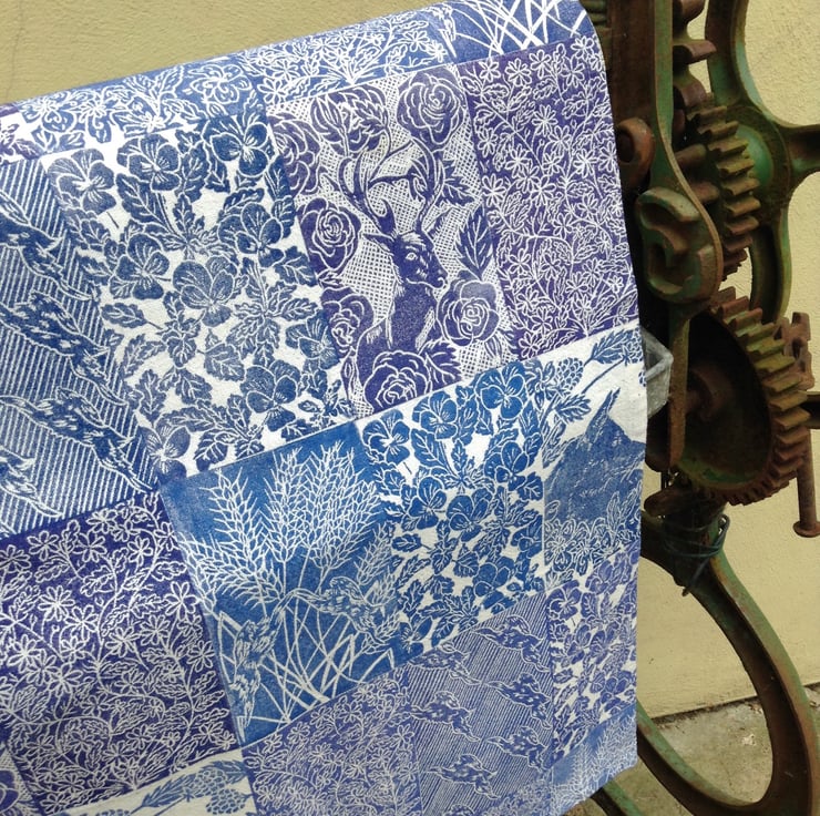 Printed using a Lino block printing method, using linseed oil based ink on a lovely cream 100% cotton.