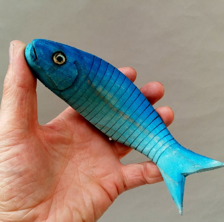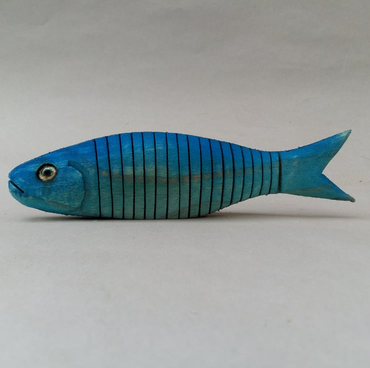20 cms fish in spruce. It had a previous life as an Ikea bedframe.