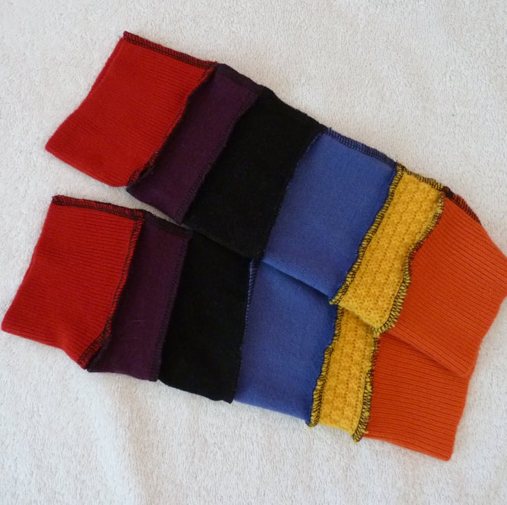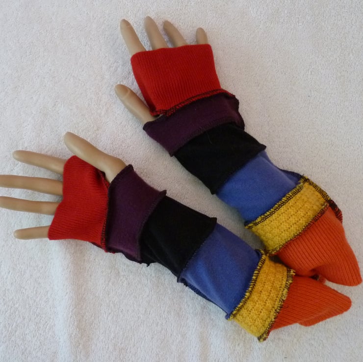 Fingerless Gloves Arm-warmers created from Up-cycled Sweaters.Red.Yellow.Orange