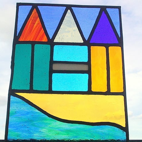 Gorgeous stained glass panel to bring the sunshine and sea breeze to your home whatever the weather.