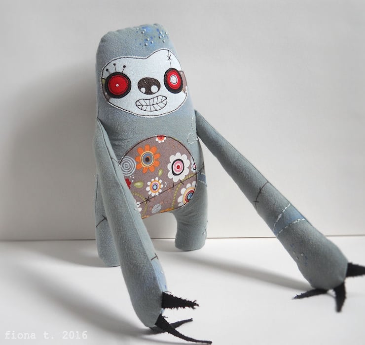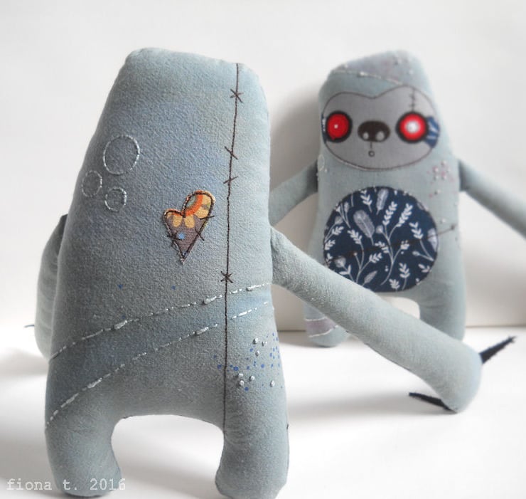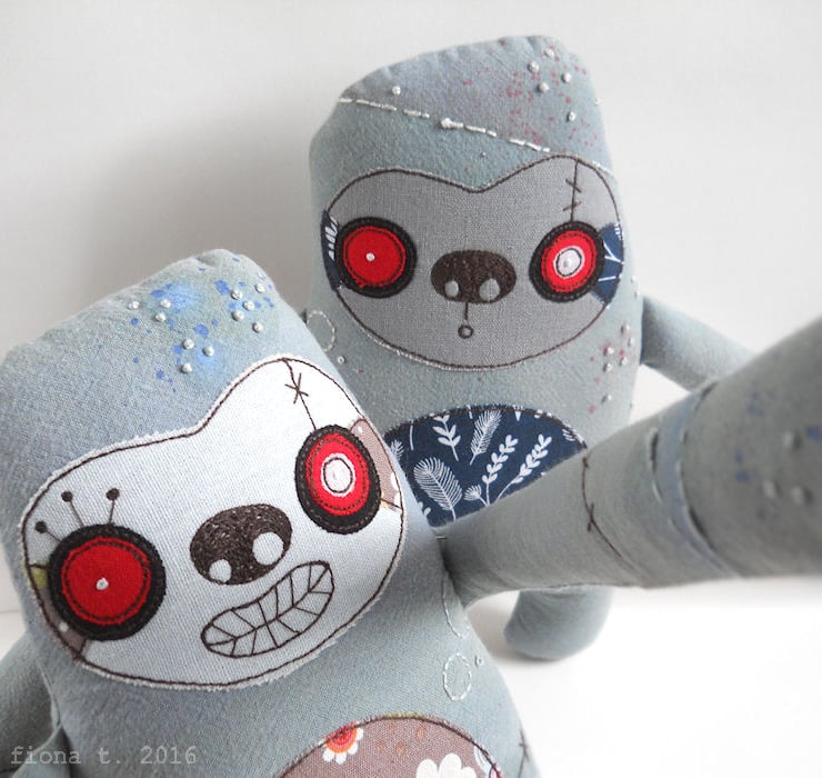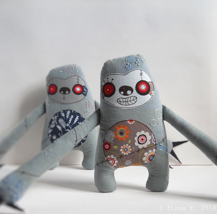 the sloths themselves have been made entirely on a domestic sewing machine, everything is cut, stitched & drawn freehand by me.