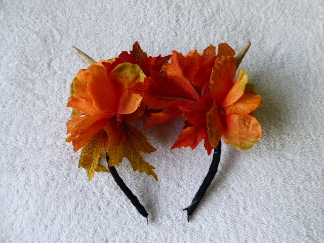 This fabulous antler headband has been created from deer antler tips, attached to a metal 6mm metal headband. The real antler tips are approximately 3 - 4" long, and are the tips of naturally shed antlers that the deer loose each year. The band has then been covered in velvet ribbon and wrapped in lace, before the artificial flowers are attached. The headband is flexible and will fit most adult head sizes.