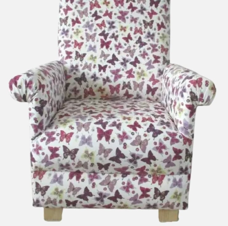 Girls Lilac Butterflies Fabric Armchair Children's Chair Pink Butterfly Bedroom