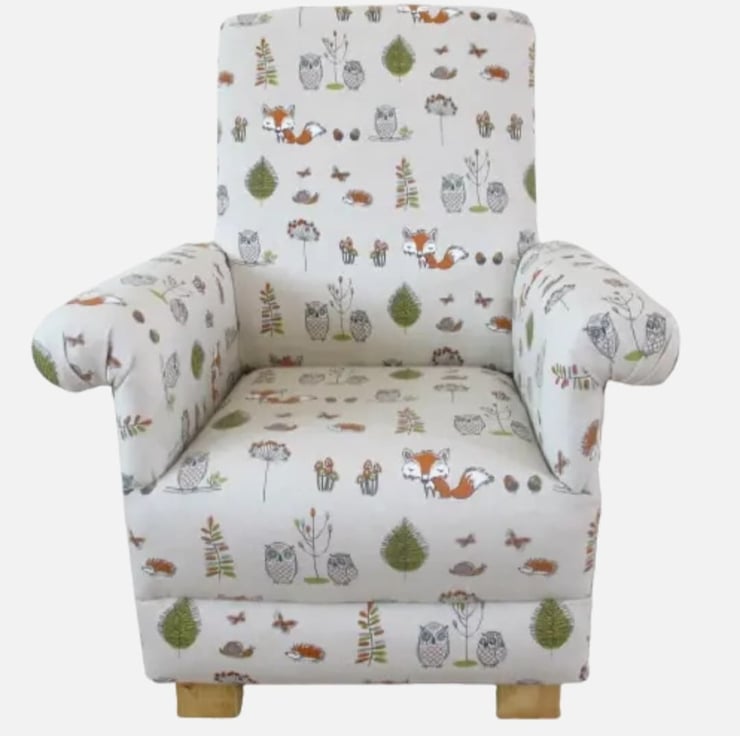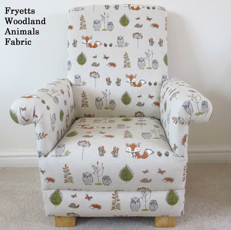 I am a professional upholsterer with over 33 years experience, and have made this sturdy little CHILD’S chair, using Fryetts Woodland Animals fabric.