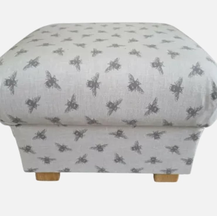 I am a professional upholsterer with over 33 years experience, and have handmade this storage footstool using Fryetts Bees fabric in Natural.
