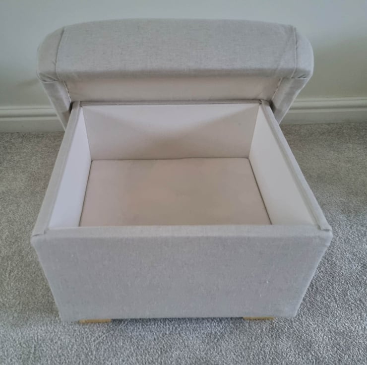 I am a professional upholsterer with over 33 years experience, and have handmade this storage footstool using Laura Ashley Austen Natural fabric.