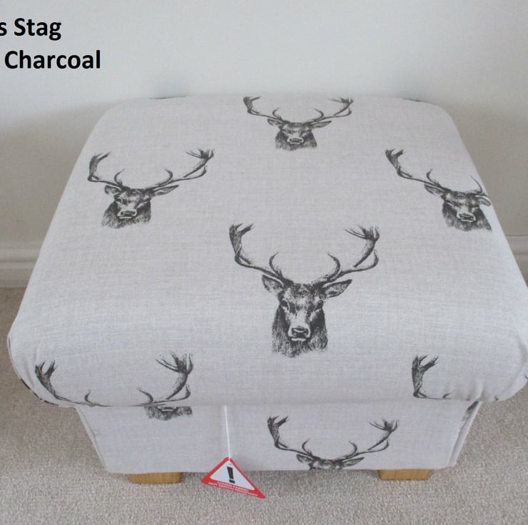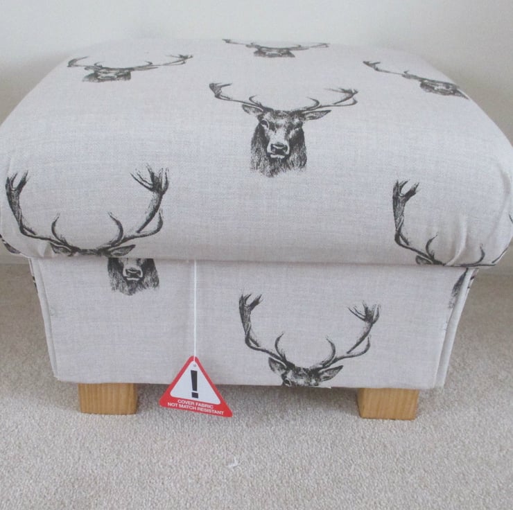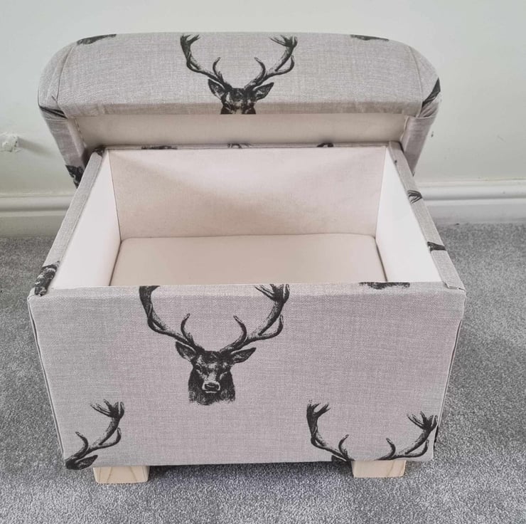 I am a professional upholsterer with over 33 years experience, and have handmade this storage footstool using Fryetts Stag Head fabric.