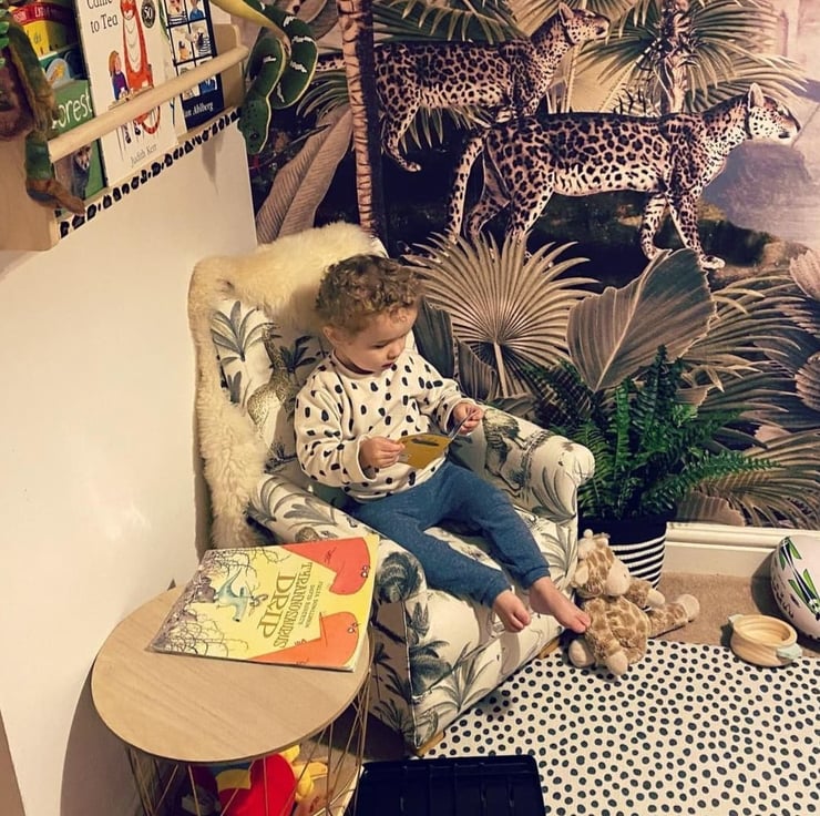 This lovely little armchair measures approximately 29 inches in height, by 22 inches wide and is suitable for children aged up to 9 or 10 years. It has a wooden frame and has a fire retardant interliner, which makes it compliant with UK fire regulations.