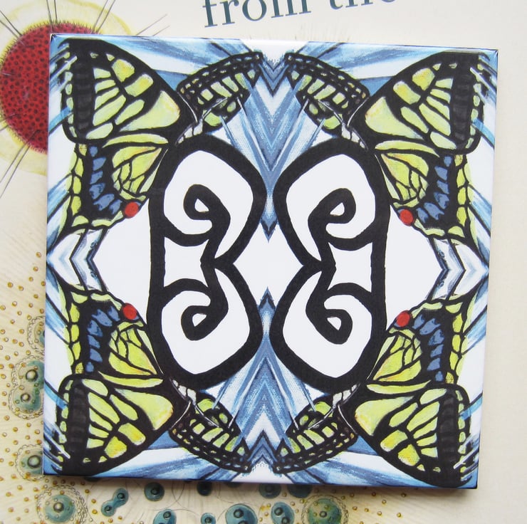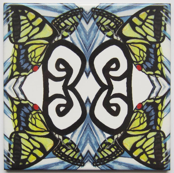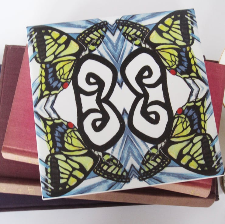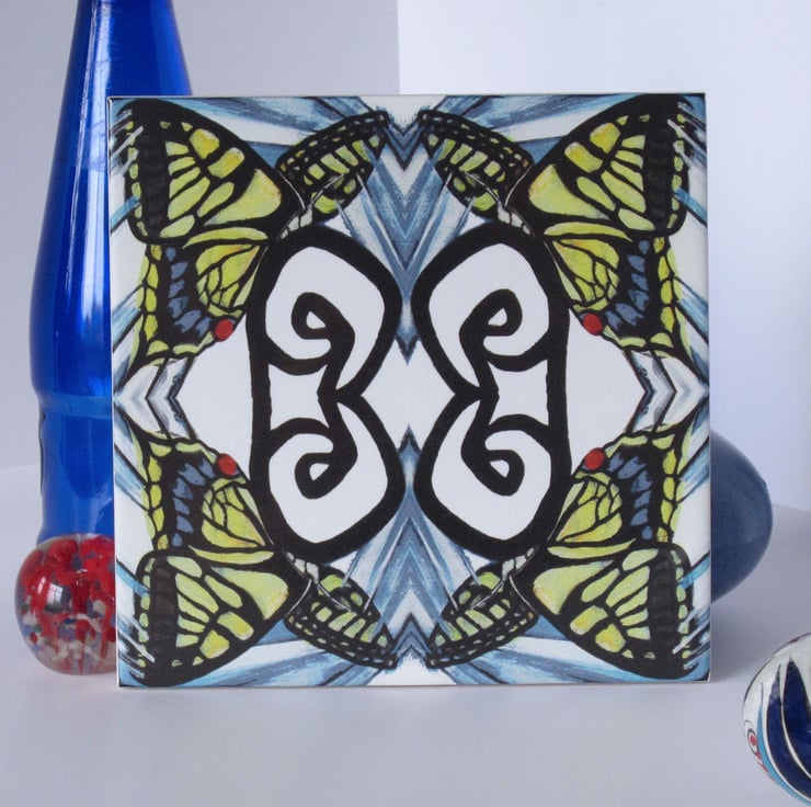 Swallowtail Butterfly Design Ceramic Tile Trivet with Cork Backing