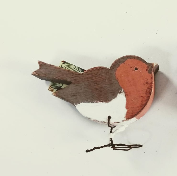 This listing is for the smaller Robin in the photograph and it is made using reclaimed wood which we source locally and rusty wire legs. I cut and paint these all in my home in the Scottish Borders on a bandsaw and then paint each one myself by hand so no two will be exactly the same.