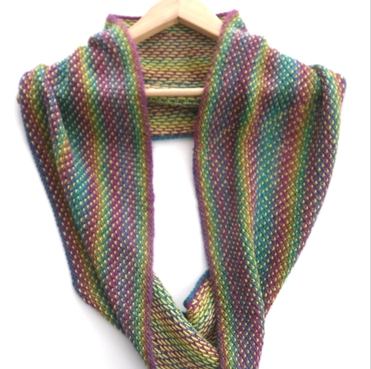 Stunning colours and effect. Fully reversible scarf, both sides totally different. It's hard working out which is the best side!