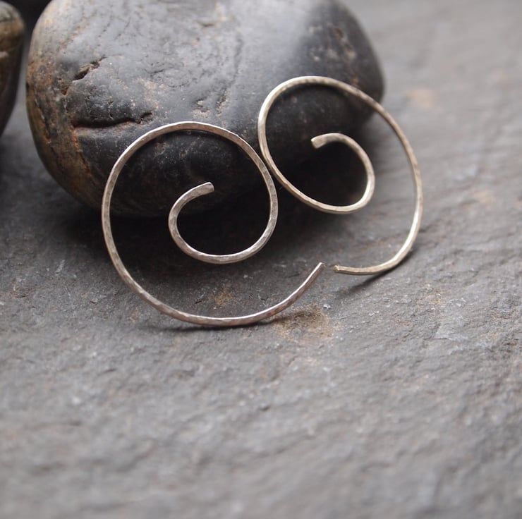 A lovely curl of lightly hammered sterling silver is used to form these handmade earrings.