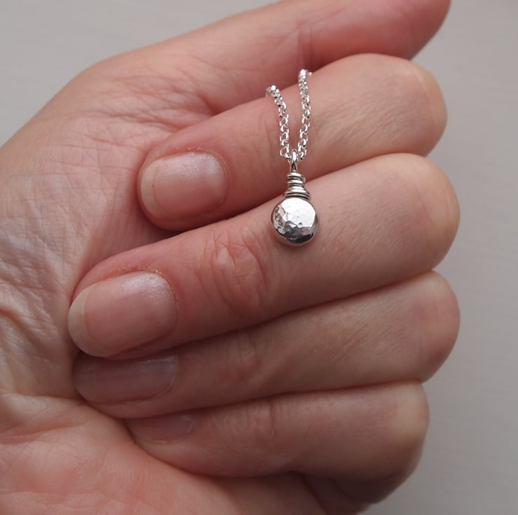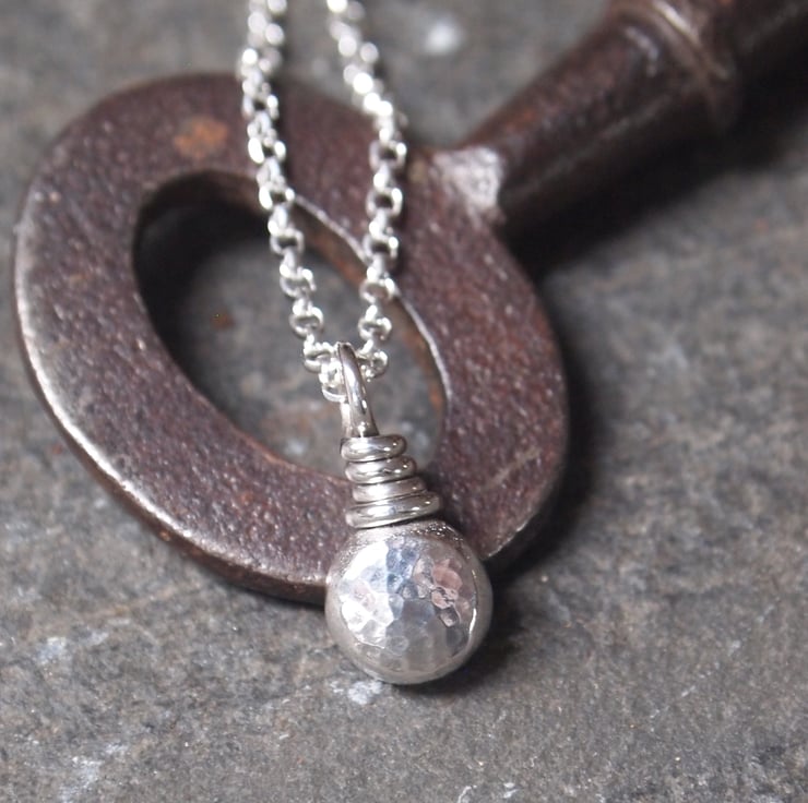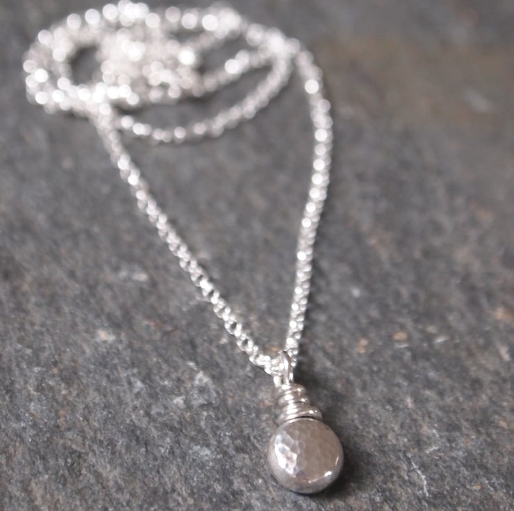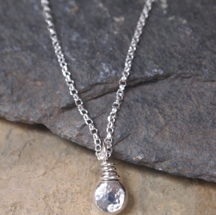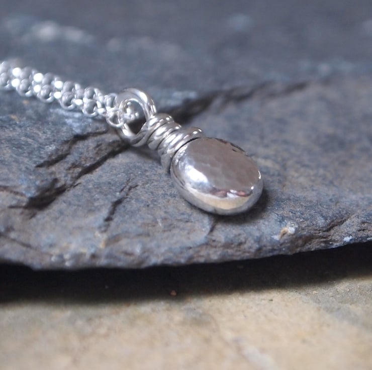 Silver Necklace - A little pebble of sterling silver is formed using recycled pieces of silver that are melted, shaped and then hammered, giving a lovely sparkly texture to the surface of the pebble.