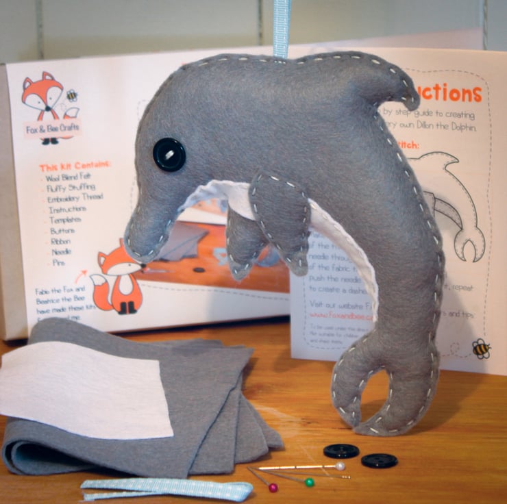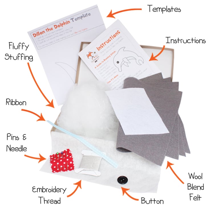 Dillon the Dolphin sewing kit includes everything you need to make your very own hangable creation. Makes a perfect gift for birthdays, Christmas and other occasions, keeping busy during the holidays or as a present just for you.