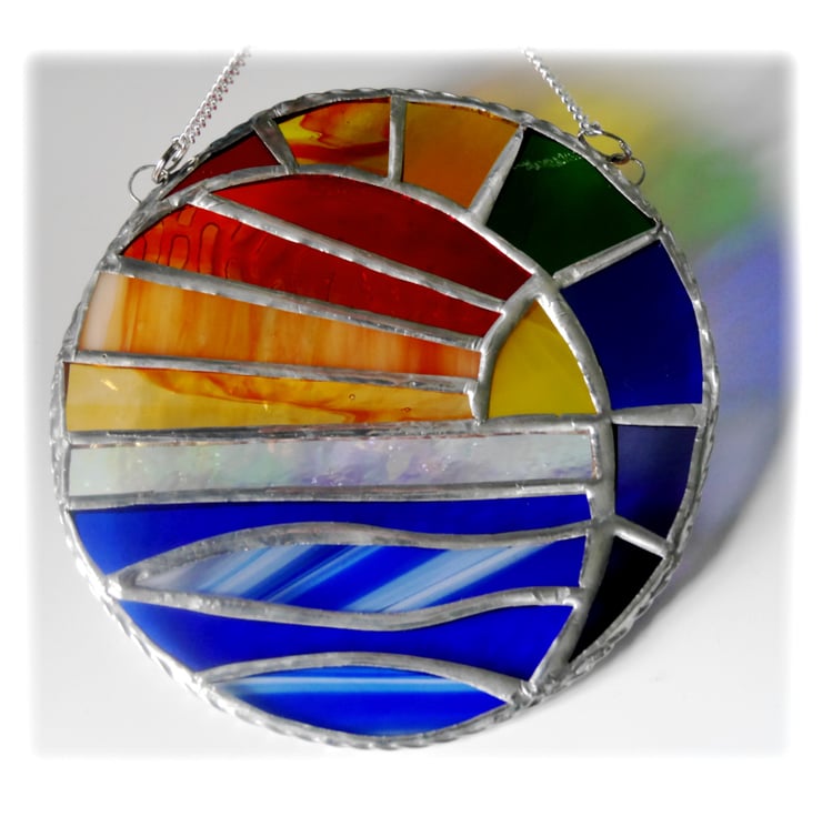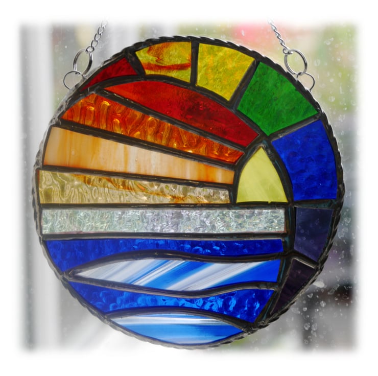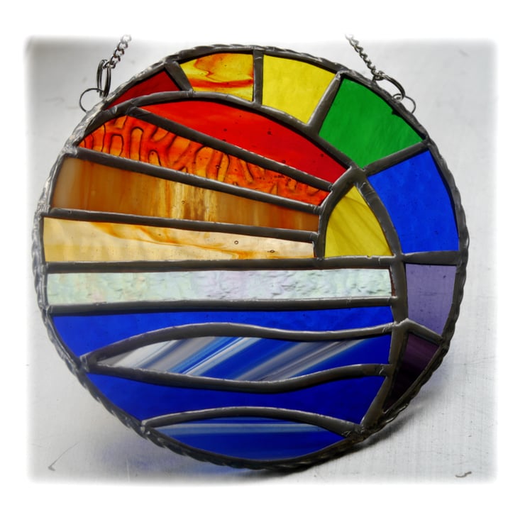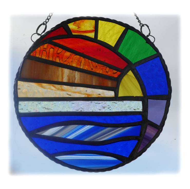 A brand new design as I wanted to try a combination of my favourite stained glass themes, a sunset over the sea and a rainbow.