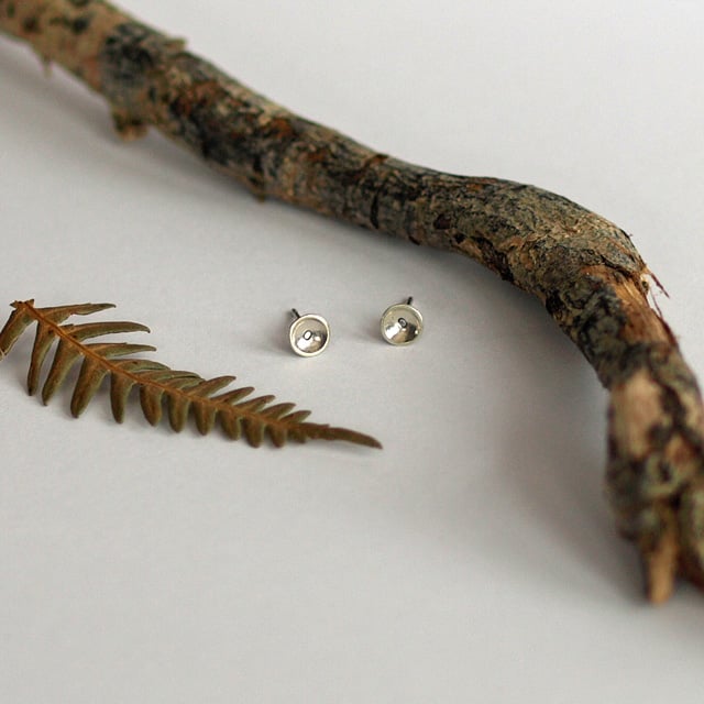 These tiny domed studs have been handmade by forming a tiny dome out of recycled sterling silver sheet, then hand-stamping the letter "O" in the centre to add an extra level of interest, next soldering on sterling silver earring posts to the backs and finishing with a polish and butterfly backs.