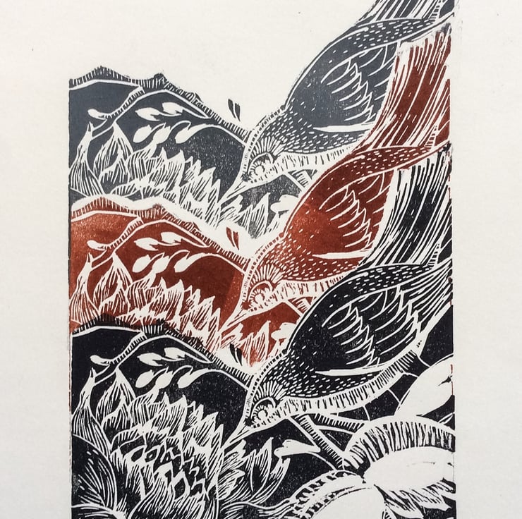 Part of a series of two experimental Lino prints using Lino blocks as a repeat.