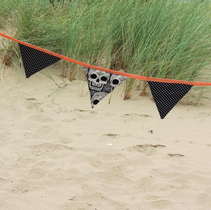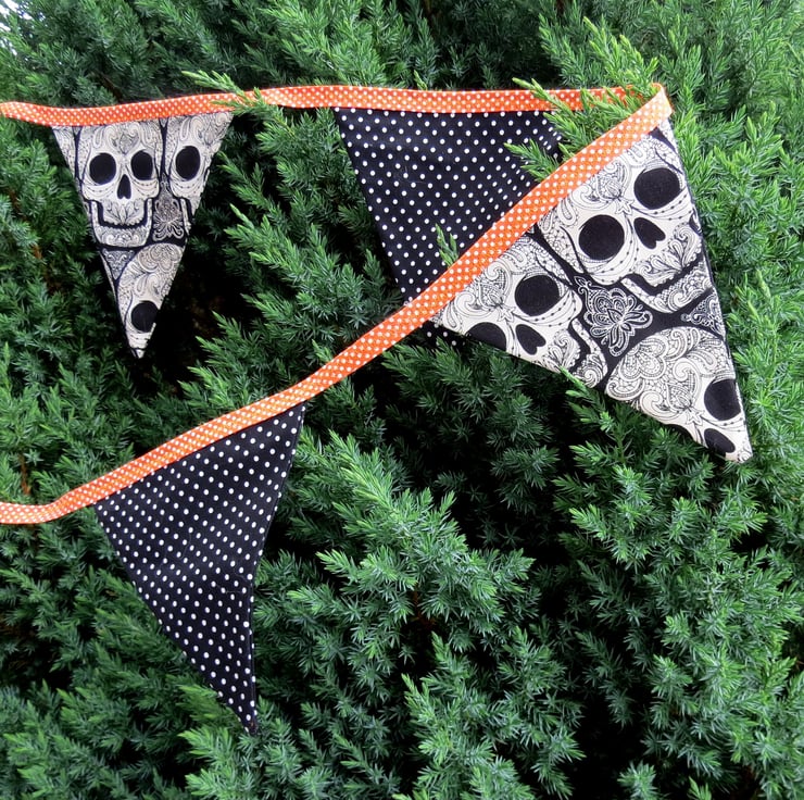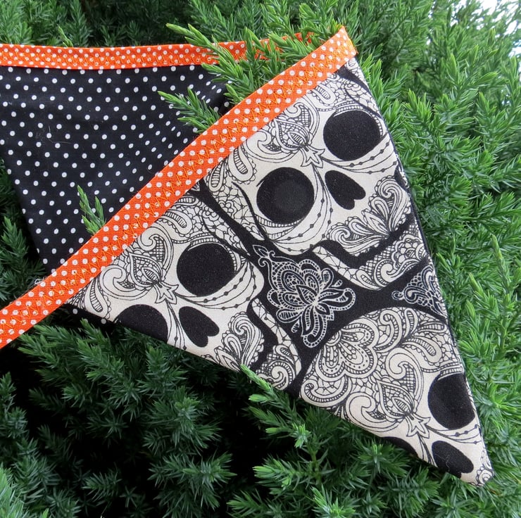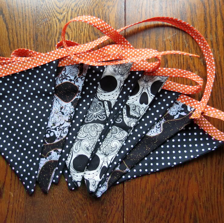 They are securely sewn to a length of orange and white polka dot bias binding.