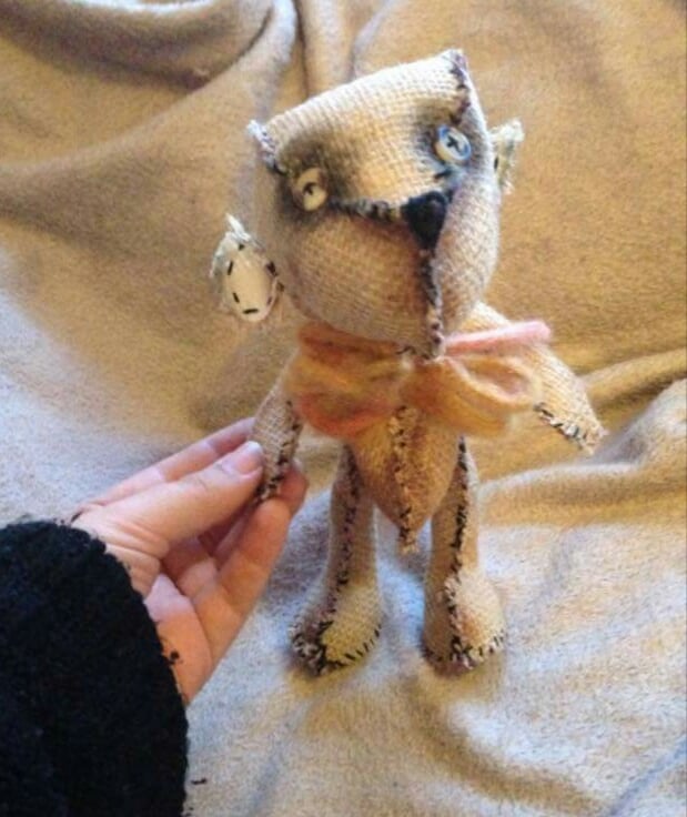 I was decorating my new shop and had a lot of hessian lying around, I love to work with furs but was just a little bit curious as to how easy it would be to sew a hessian bear. Even cutting the pieces was a challenge and I knew straight away that turning it the right way was going to be a huge NO so I decided to make the stitching even more of a feature and do it in black. I love how he turned out and hope you do too.