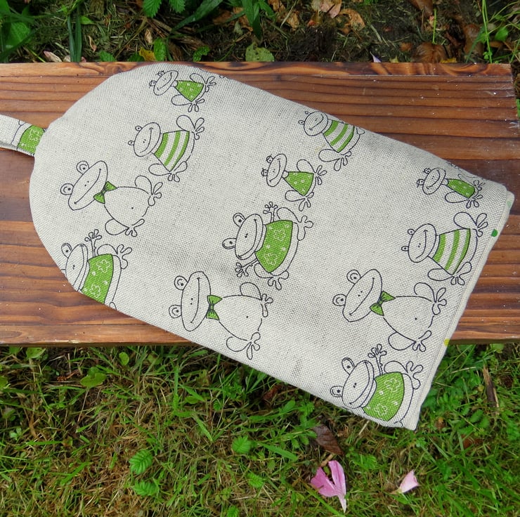 The fabric used is a medium weight cotton, with a frogs design.