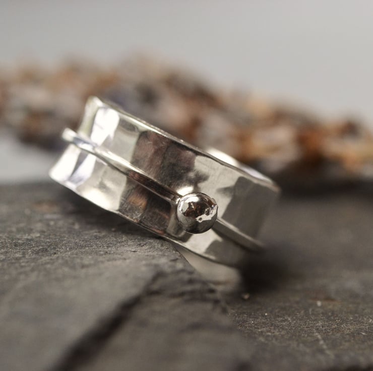 These rings are handmade to your required size. The band is 8mm wide and is hammered to achieve that lovely texture.