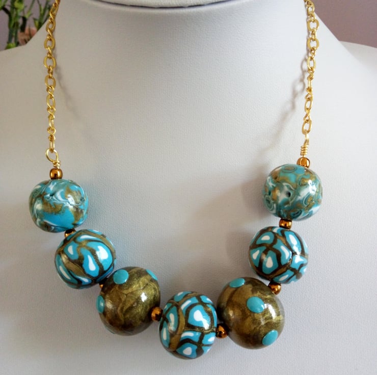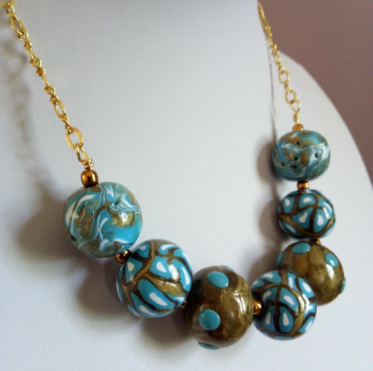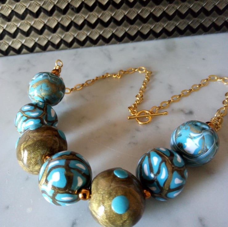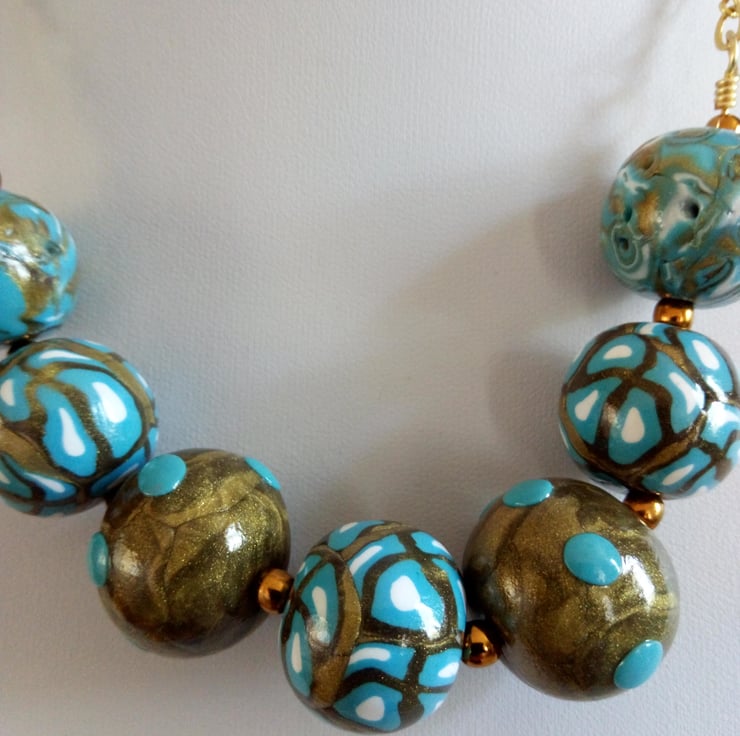 Beads have been made with Antique gold and Turquoise polymer clay.