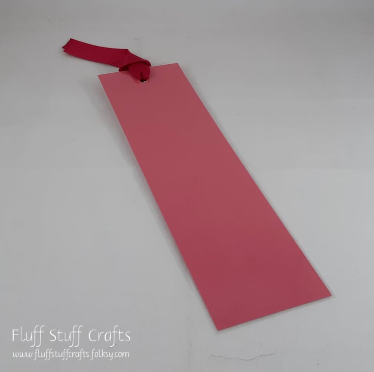 Handmade bookmark featuring pink geranium flowers, grown in my garden. The flowers have been pressed and layered over patterned paper and pink card to create the bookmark. This has then been heat laminated to make it more durable and a length of pink, grosgrain ribbon added, to make it easier to find your place.